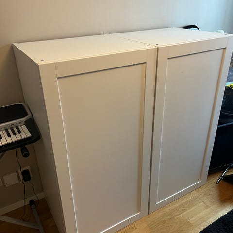 Skåpen kan staplas ovanpå varandra som på bilderna eller ställas bredvid varandra.