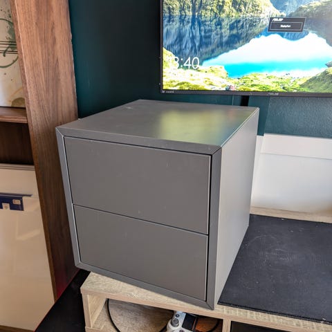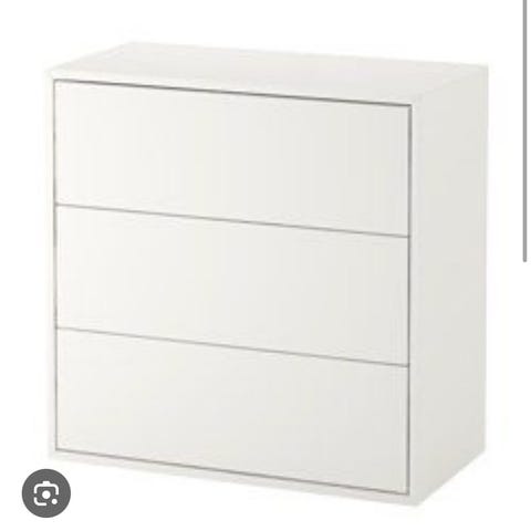 Eket byrå från IKEA med tre lådor som inte finns i sortimentet längre. Benen är 10 cm. Pris vid inköp: 1495 kr.