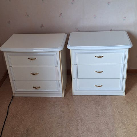 Två stycken vacka sängbord i ok skick med mycket potential för den som är villig är lägga lite energi på dem.