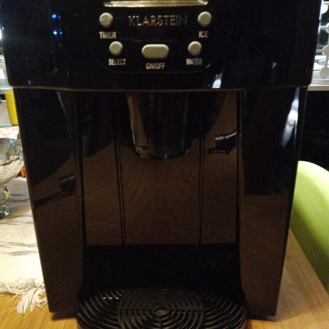 Den producerar isbitar snabbt och enkelt. Maskinen fungerar genom att fylla botten med vatten som sedan pumpas till formar där isbitar skapas. Den ansluts med en vanlig stickpropp för 230V. Den är som ny, och i nypris för ca 2500 kr.