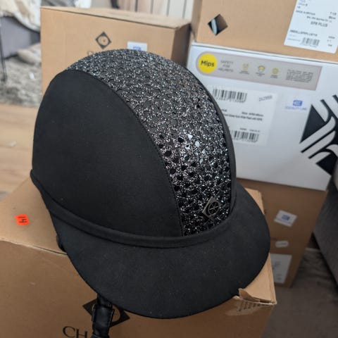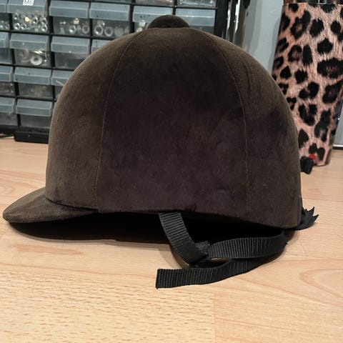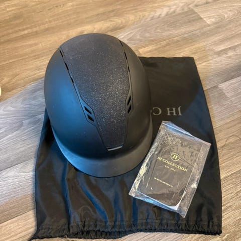 Mycket fin travhjälm från Velt Wahlsten i strl S, mycket lite använd.Svart hjälmskydd ingår.