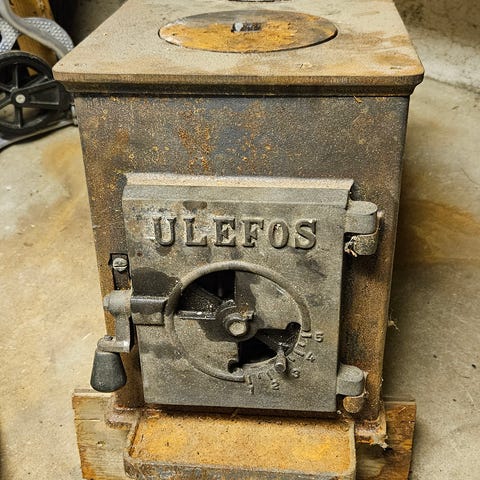 Braskamin i gjutjärn i bra skick med delar säljes för avhämtning.