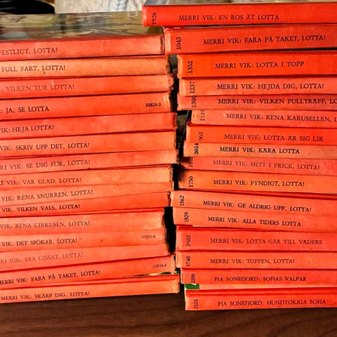 Här hittar du även böcker om Lotta av Merri Vik och Mary, Lou av Carolyn's Keene och böcker av Alfred Hitchcook.