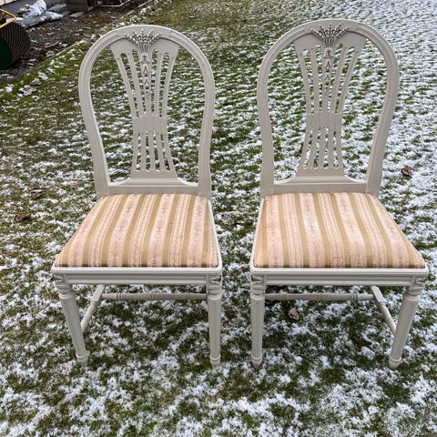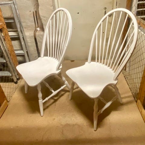Sex stycken windsor pinnstolar, varav två karmstolar. Stabila, sköna och i mycket fint skick. Nyligen lackerade.