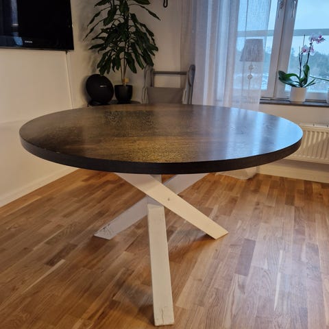 Klassiskt Perstorp bord från 70 talet. Fullt funktionellt. Två utdragsskivor på 30 cm integrerade i bordet, så det kan bli 120, 150 eller 180 cm. Säljes pga flytt och hämtas helst nästa vecka 7. 3 tr ej hiss, kan tyvärr inte erbjuda bärhjälp.