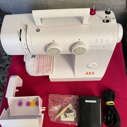 Husqvarna zig zag symaskin i grön färg. Elektrisk symaskin med olika sömmöjligheter, inklusive sicksack. Utrustad med fotpedal och trådrullehållare. Passar för allmän sömnad.