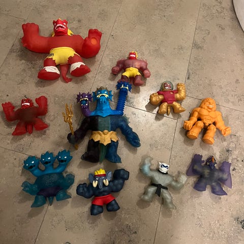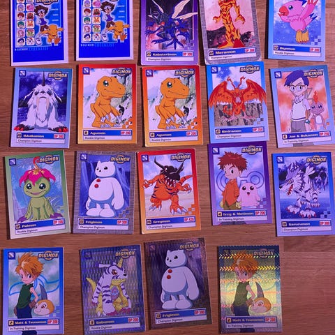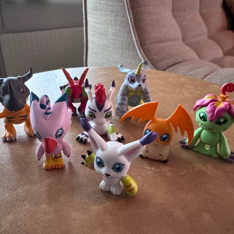 Samling av Digimon figurer i plast med olika karaktärsdesigner och färger. Figuren inkluderar flera olika karaktärer med detaljerade attribut och tillbehör. Passar för samlare och fans av Digimon-serien.