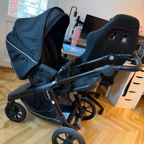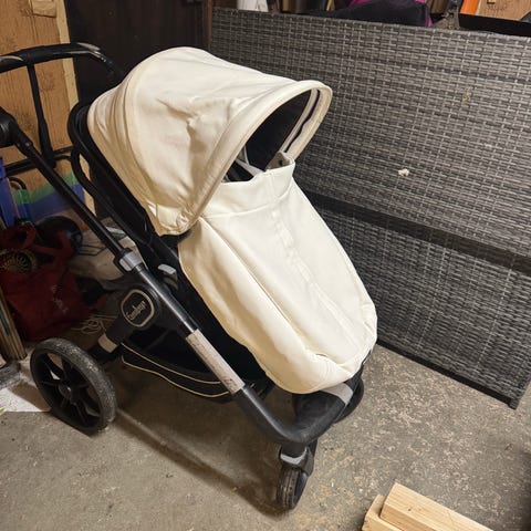 Ingår myggnät och solskydd. Samt adapter till babyskydd (maxicosi)