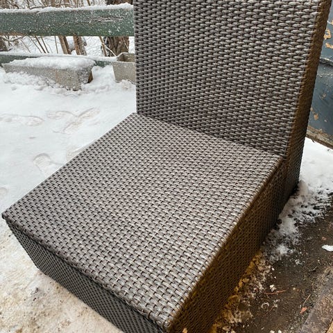 Säljer vår utesoffa tillverkad i svart konstrotting. Passar för utomhusbruk och är utformad för att ge hörnplats med sittkomfort. Okänd modell. 3 moduler á 1x1m.