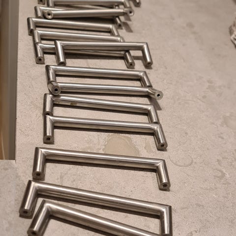 18 st klassiska handtag till köksskåp/lådor. Skruvar och handtag som är på bilden är vad som ingår.
