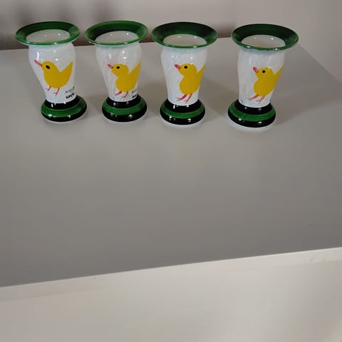 6 det glas ur serien Pippi, formgivna av Walter Hickman för Kosta Boda glasbruk under senare delen av 80 talet.