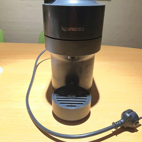 Nespresso Vertuo Pop i gul och svart färg. Kompakt design för enkel användning och platsbesparing. Passar för bryggning av kapslar från Nespresso.