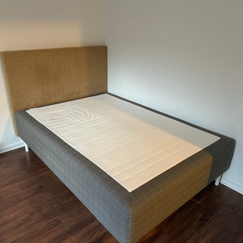 Säljer denna säng av modell Skårer IKEA pga köp av större. Inköpt 2025 och mycket gott skick! Inkluderar både en lika ny bäddmadrass, ben samt jättefin sängkappa från HM Home.