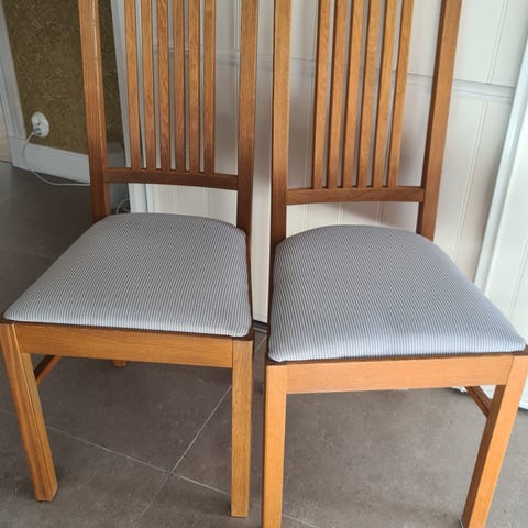 De fyra stolarna är i bra skick men två behöver renoveras och ingår i priset.