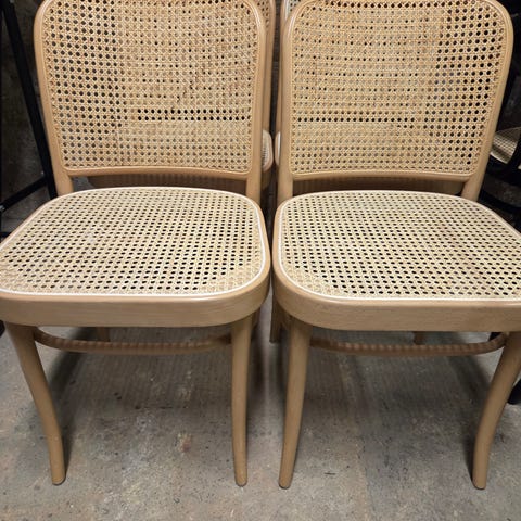 Matstol från TON med en tidlös design för alla hem och stilar. Den är gjord av böjd bok med en rottingklädd sits för en sofistikerad och elegant touch.