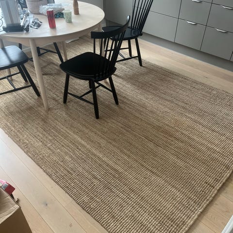 Stor matta från ikea, ljusblå (färgen har utgått ur deras sortiment). Går att ha både inne och ute.