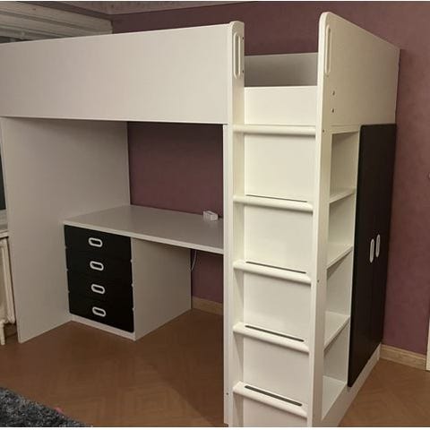 Ikea loftsäng med skrivbord och tillhörande garderob i gott skick säljes. Nypris 5995
