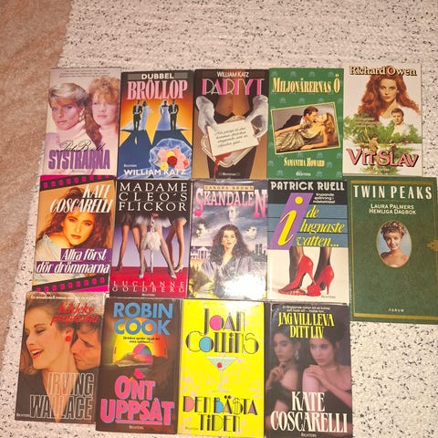 Blandade böcker av författarna Simona Ahrnstedt, Lucinda Riley och Lucy Dillon. Böckerna är i olika genrer och storlekar, på svenska. Passar för läsare som är intresserade av samtida och historisk skönlitteratur.