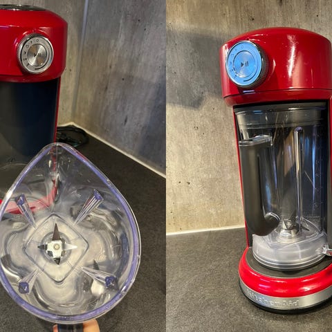 KitchenAid Artisan Blender med en kapacitet på 1,4 liter i färgen creme. Blendern har en robust design och är lämplig för att mixa smoothies, soppor och andra ingredienser. Den är utrustad med en kraftfull motor och en användarvänlig kontrollpanel för enkel hantering.