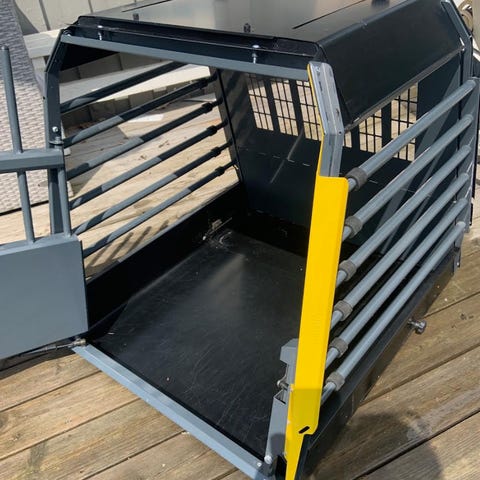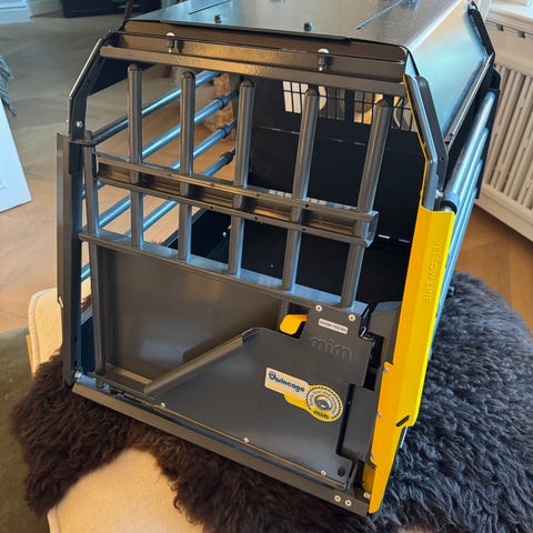 Säljer vår hundbur som blivit för liten då vår hund vuxit ur buren på längden. Passar dom flesta bilmodeller. Vi har haft den i en Volvo V70 och är väldigt nöjda med den. Nyckel saknas, det går att beställa en ny om man vill. Vi har ett hänglås. Nypris 7350kr https://www.mimsafe.com/se/product/variocage-single-xl/
