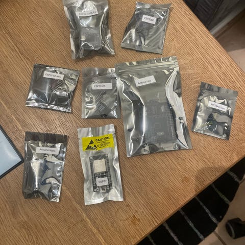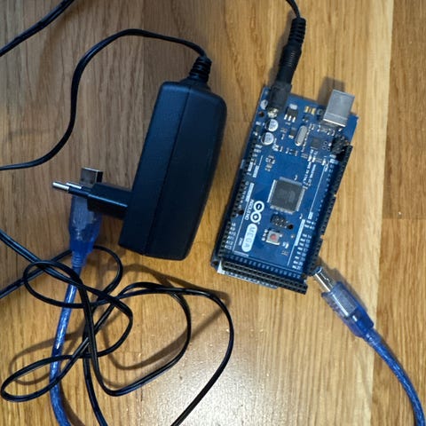 Arduino Kit med olika elektronikkomponenter inklusive hjul, batterihållare, kopplingskort och diverse kablar. Kit för elektroniska projekt och prototyper, lämpligt för utbildning och hobbybruk.