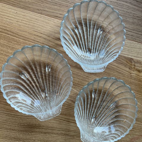 2 glasfiskar dekoration i genomskinligt glas. Setet består av två fiskformade glasföremål med texturerad yta. Används som prydnad eller dekorativa inslag i hemmet.