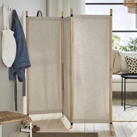 Ellos Home rumsavskiljare tillverkad i trä med vit färg. Produkten har dekorativa utskärningar och består av tre vikbara paneler. Passar för avskiljning av rum eller som dekorativ inredningsdetalj.