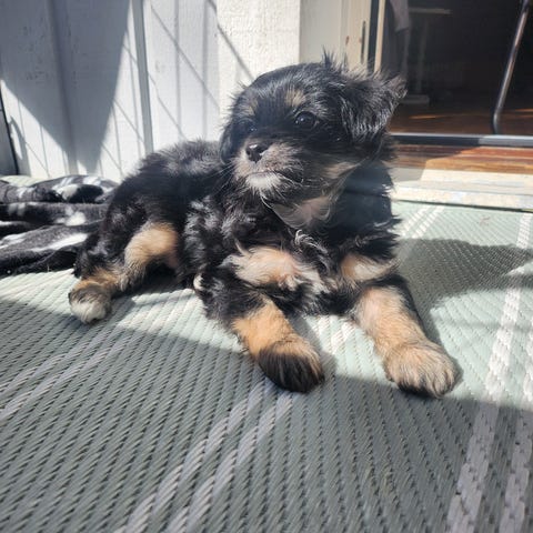 Valp född och uppväxt i hemmiljö, social och tillgiven. Med lite hjälp snart också rumsren.