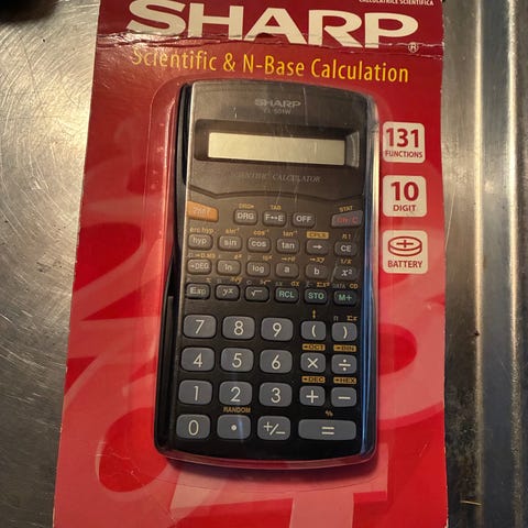 Svart miniräknare med LCD-display. En kompakt och bärbar enhet för grundläggande matematiska beräkningar.