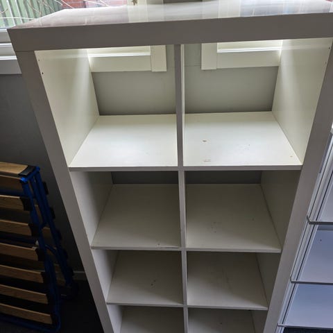 Hylla (två egentligen) till barnrummet inklusive alla lådor (11 stycken olika storlek/volym och färger)