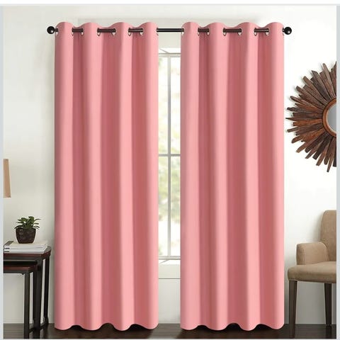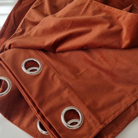 Hemtex mörkläggningsgardin i svart färg med öljetter för upphängning. Gardinen är tillverkad av ett material som blockerar ljus, avsedd för att mörklägga rum. Produkten har en skada i tyget som syns på en av bilderna (hål längst ner på ena gardinen, syns ej när de är ihopdragna).