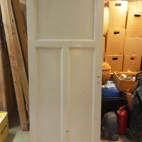 Trädörr med vit färg. Passar för användning som innerdörr i bostäder eller kontor.