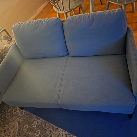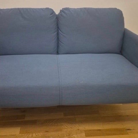 En ljusblå 2-sits soffa från Ikea, Glostad. Just denna färg har utgått från sortimentet. Perfekt till ett barnrum eller mindre lägenhet.