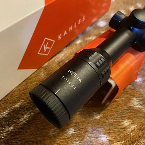 Kahles Helia 2-10x50i kikarsikte med variabel förstoring från 2 till 10 gånger och objektivdiameter på 50 mm. Designad för jakt och precisionsskytte med tydliga justeringsmöjligheter.
