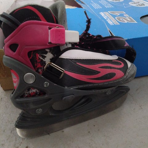 Ej använda så mkt. Justerbar storlek 30-33. Snörning samt spänne. Stabila för små åkare