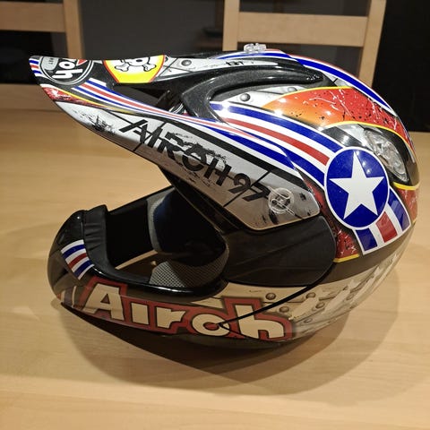 Raven crosshjälm i svart färg. Hjälmen är utformad för motocross och offroad-användning. Levereras med tillhörande skyddsglasögon med tonade linser för ögonskydd vid körning.
