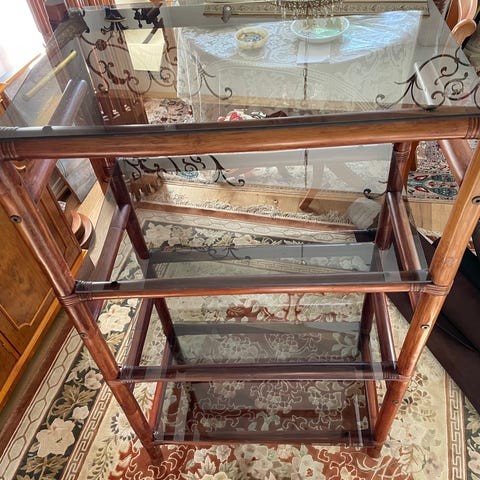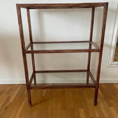 Hylla i mässingsfärg o marmorskivor från Madam Stoltz