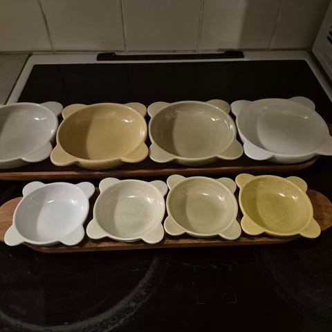 Set med serveringsskålar i tre delar som när de placeras ihop formar en fisk