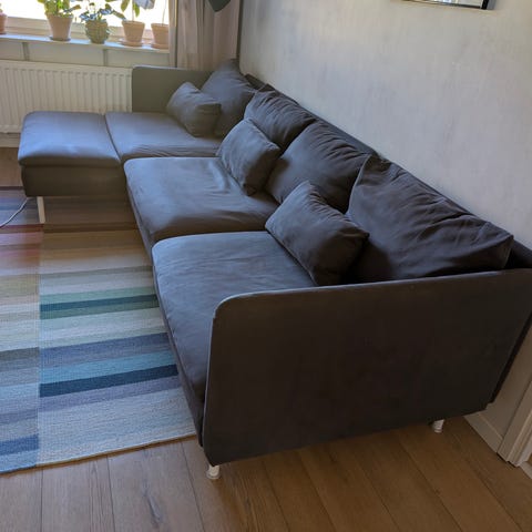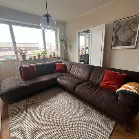 Äkta läder soffa säljs pga flytt. Den går att delas upp så att man bär ut den i ”delar”. Kommer även två stolar till den på 700kr / st om man vill ha dem. Se sista bild.