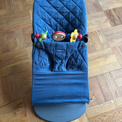 Fin och stabil barnstol från BabyBjörn i mjuka rosa/beige toner.
