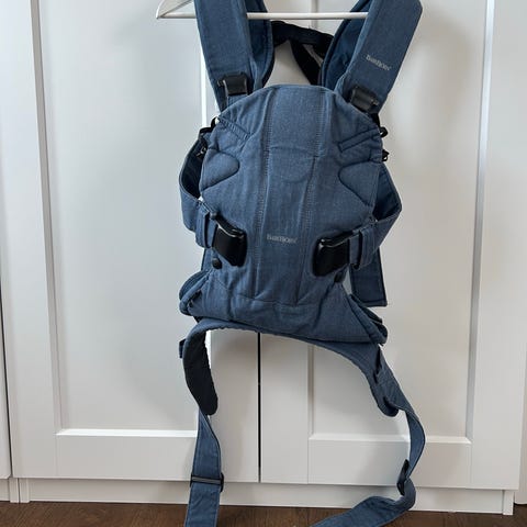 BabyBjörn Baby Carrier Mini bärsele i färgen beige. Tillverkad i mjukt jersey tyg, designad för nyfödda barn. Bärselen är kompakt och ergonomisk för att ge stöd och komfort vid bärande av spädbarn.