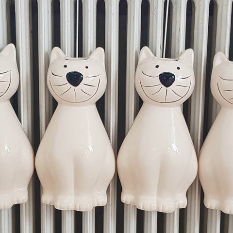 6 stycken luftfuktare i keramik till element. Har använts ett antal år så det finns kalkavlagringar inuti och någon fläck även på utsidan. De bilderna! Det följer även med en sjunde som saknar s-kroken att fästa den med, går säker att lösa en med grövre ståltråd eller liknande. Mått 24 x 8 cm.