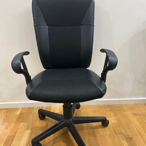 Kontorsstol med ställningsbar höjd och sittlutnibg. Armstöd går också att anpassa i höjd.