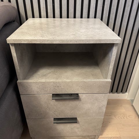 Sängbord elegant från miljögården design. Nypris 10.290 styck. Bra skick men vattenring på det ena som enkelt kan slipas bort, därav priset (priset är för båda).