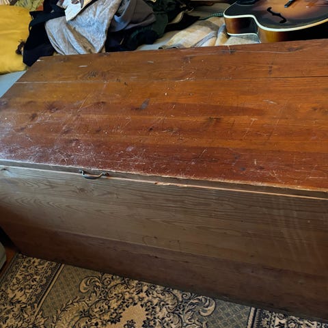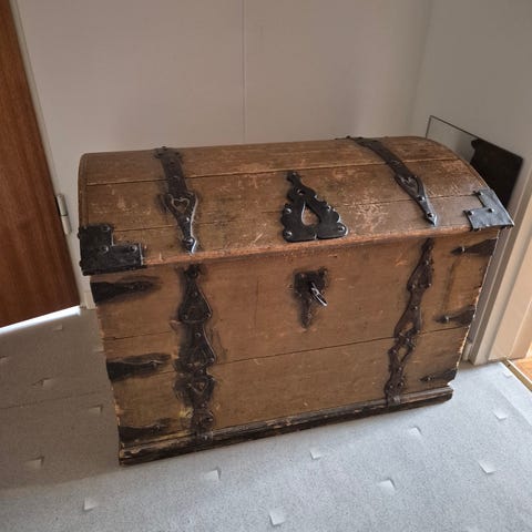 Gammal kista som renoverats. Trät har slipats och sedan betsats om och hela kistan har vaxats in för att betsen ska hålla bättre. Perfekt som vardagsrumsbord med mycket förvaring. Mått: 108 lång, 62 bred, 53 hög