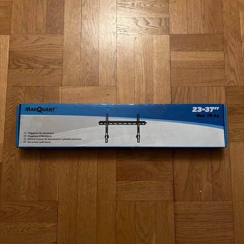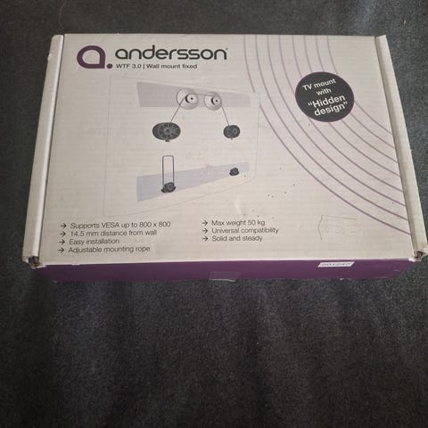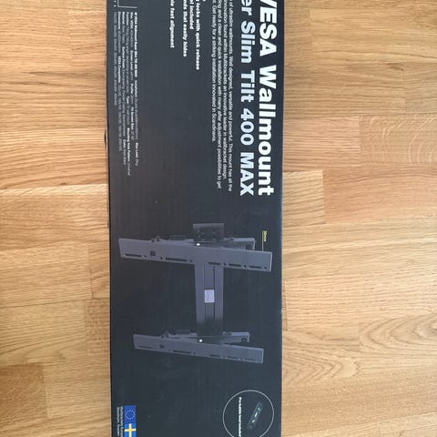 Helt oanvänd, oöppnad förpackning av upphängning till tv på vägg samt kunna vinkla den.