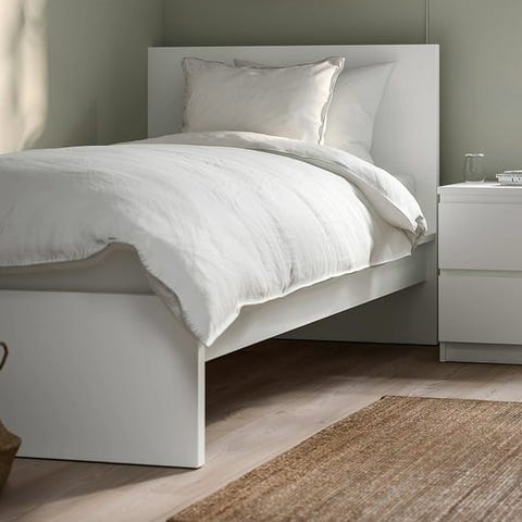 Både stomme och madrass är från IKEA varav den ena knapp är använd.