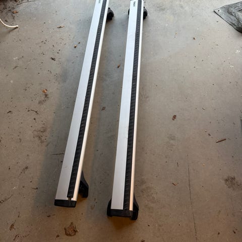 BMW takräcke original i aluminium med svarta plaständar. Utrustat med lås (2nycklar) och nycklar för säker fastsättning.