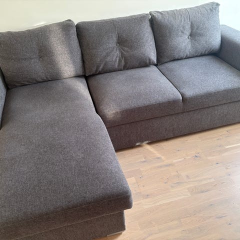 Väldigt bra skick, finns en mindre spricka på plywood-skivan inuti soffan som kom till under monteringen. Men denna påverkar inte soffans funktion eller utseende.