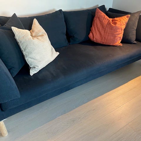 Tidlös Eilersen Streamline 3-sits i ljusgrå klädsel, designad av Jens Juul Eilersen. Inköpt på Svenssons för 2-3 år sedan. Nypris ca 50 000kr. Superfint skick!